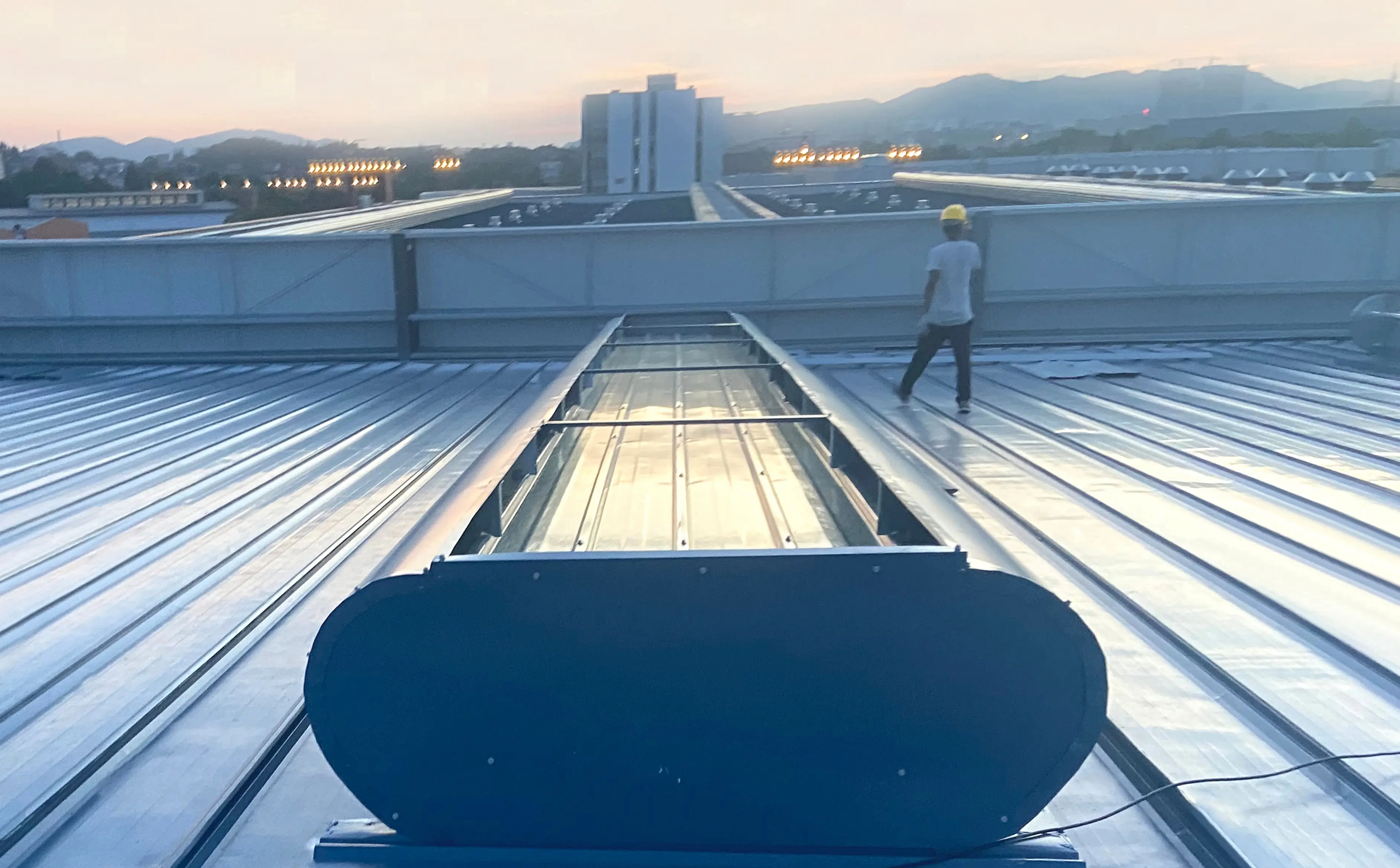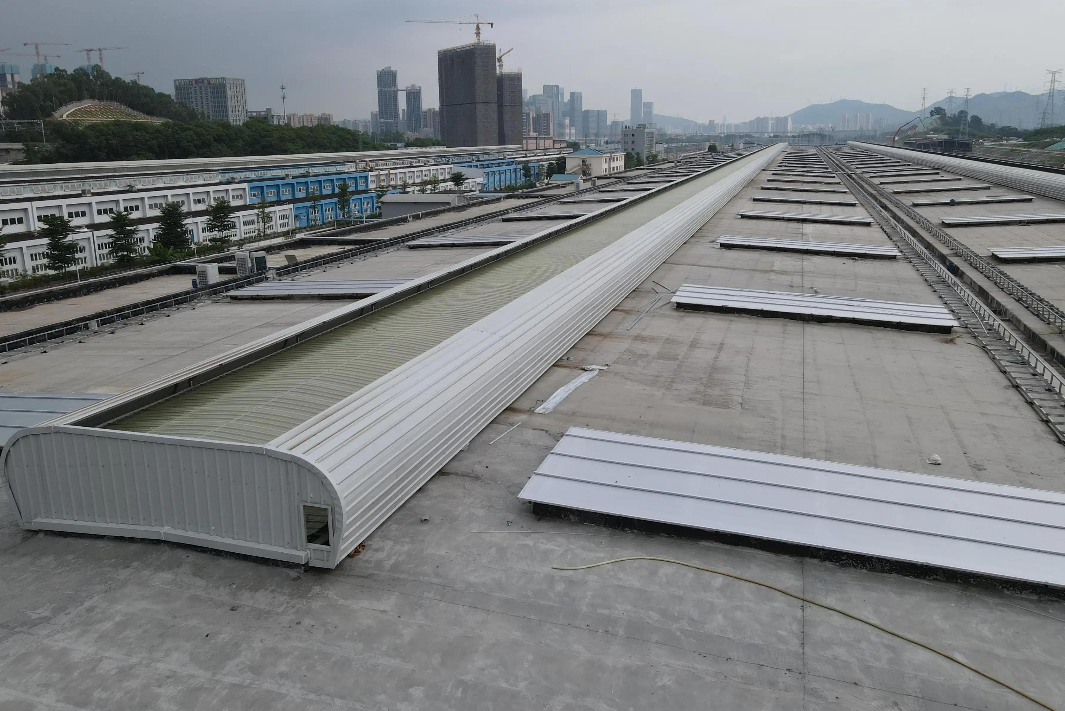 马龙区弧线型通风气楼施工现场